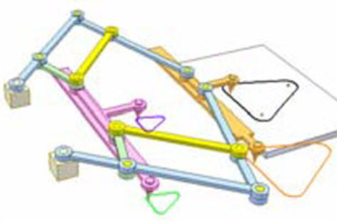 Đường lục do một điểm trên thanh truyền màu cam vạch ra được chép vào chỗ khác nhờ khớp cầu và hệ 3 con trượt (vàng, tím và xanh) chuyển