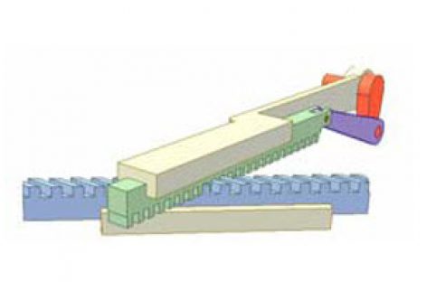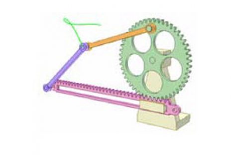 [Mô phỏng cơ cấu cơ khí] Truyền động thanh răng – bánh răng để chuyển hướng chuyển động thẳng Khâu dẫn: con trượt xanh chạy dọc đường dẫn cố định