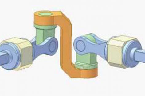 Cơ cấu truyền động góc 4R. Đây là khớp Các đăng kép. Góc giữa trục vào và trục ra A = 90 độ. Khâu hình chữ S màu cam có