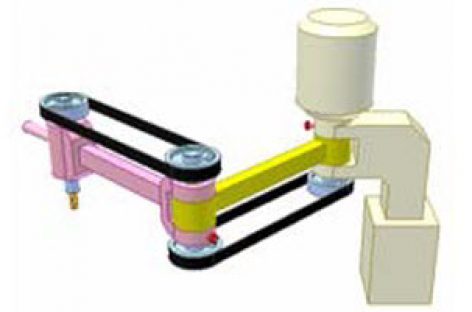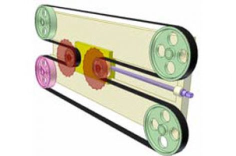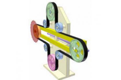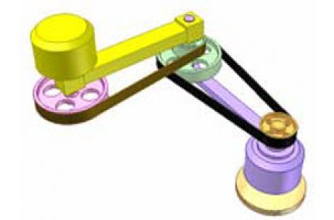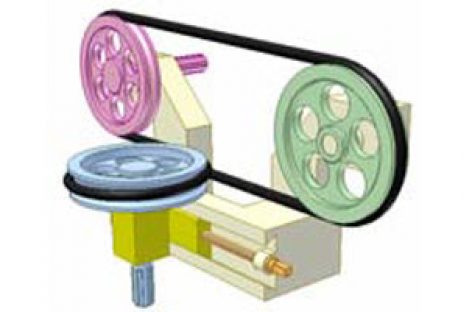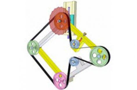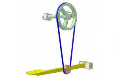 [Mô phỏng cơ cấu cơ khí] Truyền động đai 7 Truyền động giữa hai trục song song, một trục di động. Chú ý: 3 nhánh đai nối đến bánh đai