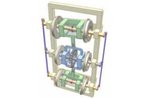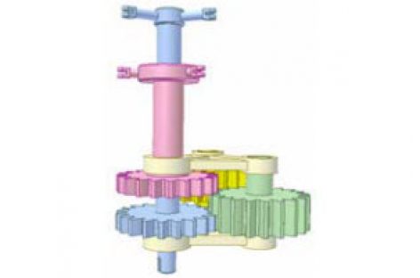 [Mô phỏng cơ cấu cơ khí] Truyền động cho hai cánh quạt đồng trục 2 Khâu dẫn: trục xanh. Trục xanh và hồng quay cùng vận tốc nhưng ngược chiều.