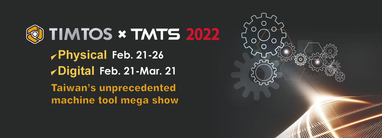 Đài Bắc, ngày 12 tháng 1 năm 2022: TIMTOS x TMTS 2022, triển lãm máy công cụ đồng thương hiệu đầu tiên của Đài Loan, sẽ được tổ chức tại Trung tâm Triển lãm Nangang Đài Bắc, Sảnh 1 và 2; từ ngày 21 đến ngày 26 tháng 2 năm nay, với sự tham dự của 950 công ty trưng bày trên 5.200 gian hàng (tiêu chuẩn). Đây sẽ là triển lãm thương mại lớn nhất ở Đài Loan kể từ khi đại dịch bùng phát, đồng thời là sự kiện quan trọng và được mong đợi nhất đối với ngành công nghiệp máy công cụ toàn cầu đầu năm 2022.