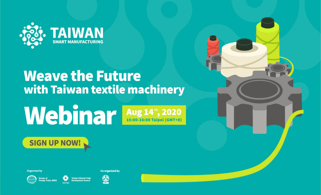 Mời Quý khách tham gia hội thảo trực tuyến (Miễn phí) của Taitra vào ngày 14 tháng 8 năm 2020, sự kiện này được trình bày bởi đại diện một số nhà sản xuất máy móc và cung cấp giải pháp cho ngành dệt hàng đầu của Đài Loan, giới thiệu các công nghệ, máy móc mới nhất trong ngành dệt may và các giải pháp thông minh sẽ giúp công ty Quý vị phát triển doanh nghiệp của mình.