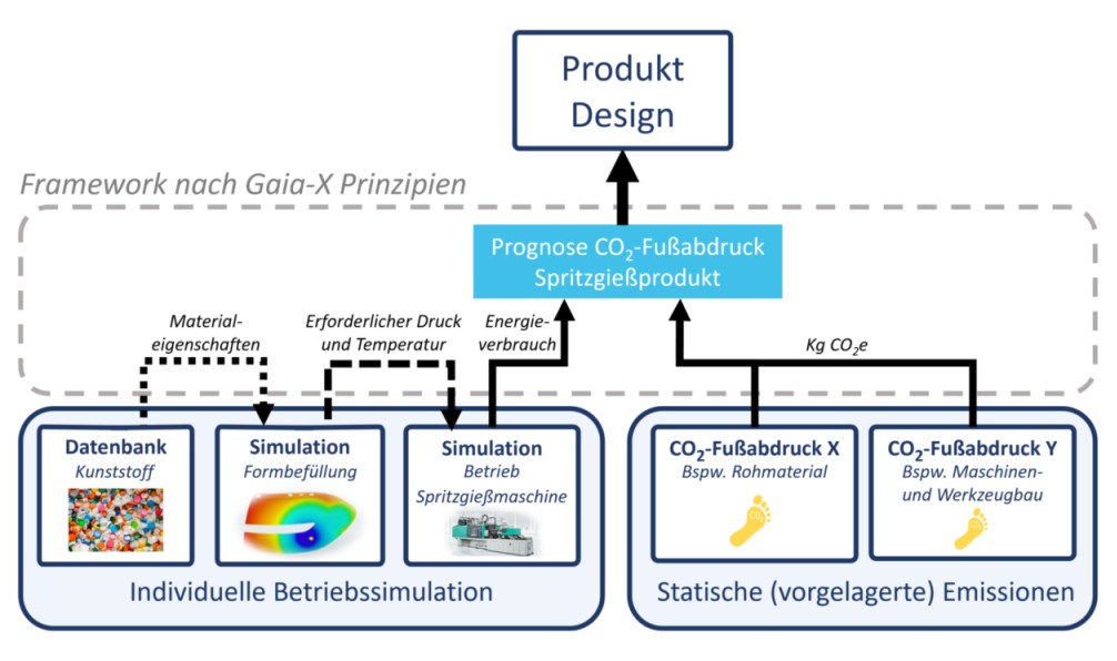 Nhóm công tác chuyên đề trước tiên sẽ cụ thể hóa dự báo lượng khí thải CO2 trên cơ sở cốc đo được sản xuất bằng phương pháp ép phun. Ở đây, có thể tránh được lượng khí thải CO2 đáng kể trong quá trình sản xuất tiếp theo bằng cách đưa ra các quyết định tối ưu trong quá trình phát triển sản phẩm, đặc biệt thông qua việc lựa chọn loại nhựa, khuôn mẫu hoặc loại và kích thước thích hợp của máy ép phun.