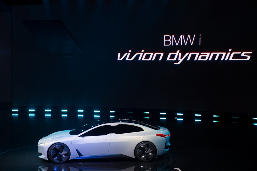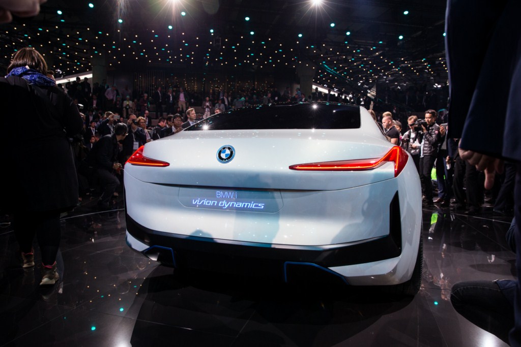 BMW i Vision Dynamics, chiếc xe điện với 4 chỗ ngồi này có thể đạt vận tốc lên đến 200km/h và cự ly di chuyển khoảng 600 km cho mỗi lần sạc. Chiếc xe mất 4 giây để tăng tốc từ 0-100 km/h