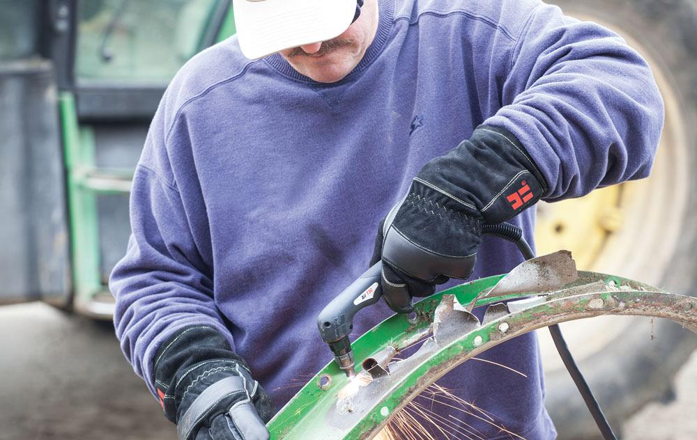 Một công nhân sử dụng máy cắt plasma cầm tay Powermax30 XP