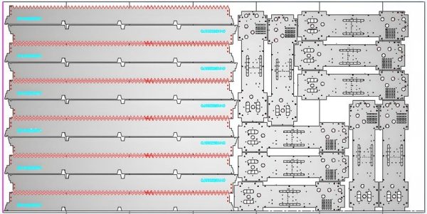 Tấm xếp phôi không sử dụng các mấu nối nhỏ mà kết hợp cả phương pháp cắt chung đường biên và cắt phá hủy (scrap-destruct) (*). Trước đây, các quy trình cắt phá hủy này thường làm tăng thời gian chu kỳ cắt. Tuy nhiên hiện nay, tốc độ cắt laser không còn là rào cản, và việc loại bỏ khung cũng như các phế liệu giúp tinh giản quá trình tháo dỡ chi tiết và dọn dẹp phế liệu.