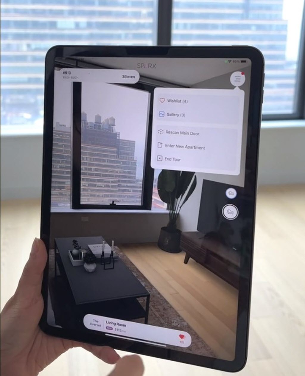 “Trong không gian thực tế tăng cường, bạn có thể thêm một lớp khác lên trên không gian thực tế,” ông giải thích. “Vì vậy, chúng tôi thêm lớp nội thất lên trên căn hộ trống.”