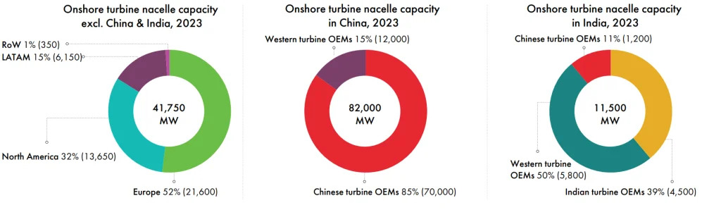 Tình hình thị trường cung và cầu năng lượng gió trên bờ giai đoạn 2023-2031 Trung Quốc dẫn đầu thế giới về hoạt động lắp ráp vỏ tuabin gió trên bờ với công suất hàng năm 82 GW. Với công suất lắp ráp hàng năm là 21,6 GW, châu Âu là khu vực sản xuất vỏ tua-bin gió trên bờ lớn thứ hai thế giới, tiếp theo là Mỹ (13,6 GW), Ấn Độ (11,5 GW) và Mỹ La-tinh (6,2 GW).
