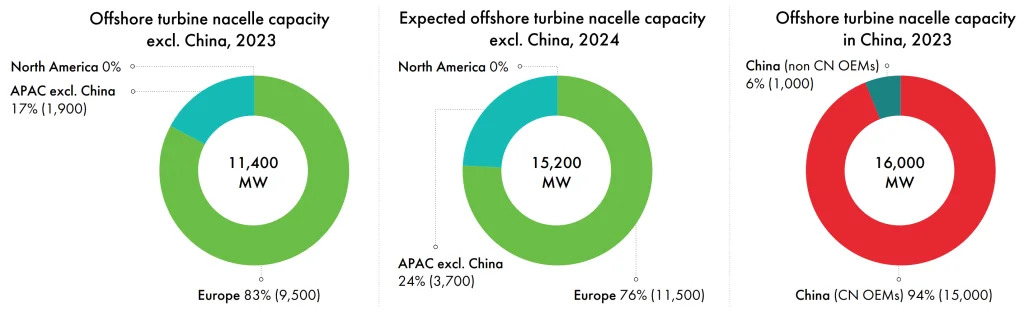 Trung Quốc là trung tâm sản xuất vỏ tuabin ngoài khơi đứng đầu thế giới, với công suất lắp ráp hàng năm lên tới 16 GW, trong đó 1 GW thuộc sở hữu của một nhà sản xuất phụ tùng gốc – OEM (Original Equipment Manufacturing) từ phương Tây.