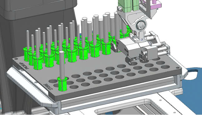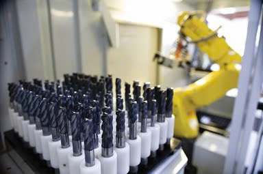 Giải pháp tự động hóa này sử dụng các kẹp có cùng đường kính ngoài để đơn giản hóa việc robot nạp các dụng cụ có đường kính khác nhau