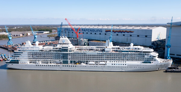 CHLB ĐỨC – Ngày 28.4.2023, công ty Silversea Cruises thuộc tập đoàn Royal Caribbean, đã ra mắt tàu du lịch mới của họ tại nhà máy đóng tàu Meyer Werft ở thành phố Papenburg (CHLB Đức). Con tàu được quảng bá là “tàu du lịch hybrid (1) sang trọng đầu tiên không phát khí thải ô nhiễm”, nhờ vào những tiến bộ của động cơ đẩy và máy phát điện. (1) Tàu hybrid: Có hệ thống đẩy sử dụng kết hợp hai nguồn năng lượng cung cấp động lực cho chân vịt quay. Cơ cấu phổ biến nhất của tổ hợp này là một động cơ điện chạy bằng ắc quy, kết hợp với một động cơ diezel.