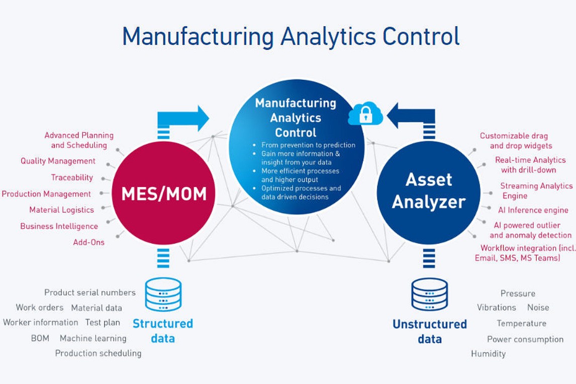 Áp dụng cho tất cả các ngành công nghiệp Một thành phần chính của nhóm sản phẩm “Manufacturing Analytics Control” là “Asset Analyser”, một công cụ được thiết kế để giúp các công ty xác định các vấn đề về chất lượng trong sản xuất và tăng hiệu quả chung. Giải pháp có thể được sử dụng trong tất cả các ngành công nghiệp, ví dụ như trong các lĩnh vực ô tô, điện tử và y tế, nhưng cũng có thể sử dụng trong các lĩnh vực như đúc phun, chế tạo kim loại và sản xuất pin.