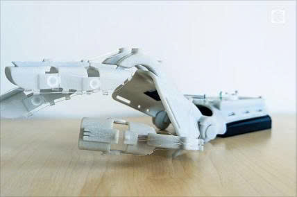 Cơ sở phát triển: mô hình CAD và in 3D Viện Fraunhofer IWU đã dựa vào các hợp kim nhớ hình tiên tiến, động cơ bước và công nghệ in 3D để tạo ra các khung xương trợ lực vừa vặn, chính xác và hỗ trợ một cách nhẹ nhàng. Ý tưởng: bộ khung xương trợ lực trước tiên cần được điều chỉnh hoàn hảo với cấu trúc giải phẫu học của bàn tay. Mỗi người có kích thước và tỷ lệ bàn tay khác nhau. Ngoài ra, có sự khác biệt giữa tay trái và tay phải của cùng một người. Việc sản xuất khung xương trợ lực bằng công nghệ in 3D sử dụng quy trình thiêu kết laser chọn lọc (SLS – selective laser sintering) sẽ mang lại sự tự do hình học không giới hạn. Trong quy trình này, các hình dạng ba chiều được tạo thành từng lớp từ bột nhựa. Theo viện Fraunhofer IWU, quy trình sản xuất đặc biệt hiệu quả nếu dựa trên mô hình CAD tham số. Lý tưởng nhất là bàn tay của bệnh nhân được quét 3D kỹ thuật số để các thông số giữa các bộ phận riêng lẻ của bàn tay được thể hiện cùng với hình dạng hình học của bàn tay. Điều này không chỉ tạo ra một “khuôn âm bản” chính xác của bàn tay trong quá trình in, mà còn giúp dễ dàng thực hiện bất kỳ điều chỉnh cần thiết nào cho các sản phẩm chế tạo mới tiếp theo bằng cách sử dụng mô hình CAD làm cơ sở.