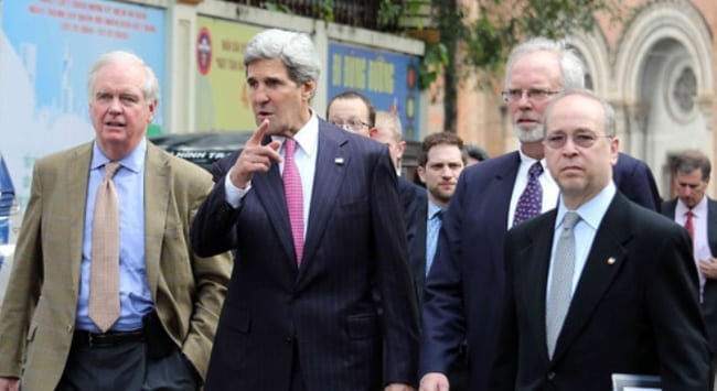 Trong chuyến thăm chính thức Việt Nam, Ngoại trưởng John Kerry bày tỏ ý định của Mỹ tăng cường quan hệ về kinh tế và an ninh với VN, với điểm nhấn chính là Hiệp định TPP. Mở đầu bài phát biểu bằng câu “Xin chào, Việt Nam”, Ngoại trưởng Mỹ John Kerry khẳng định VN là đối tác kinh tế mũi nhọn tiềm năng của Mỹ trong khu vực. Ông điểm lại các cột mốc quan trọng trong quan hệ hai nước suốt 20 năm qua, trong nỗ lực giải tỏa những rào cản cũng như thách thức do chiến tranh để lại, và tiến tới mục tiêu ngày càng xây dựng vững chắc quan hệ song phương.