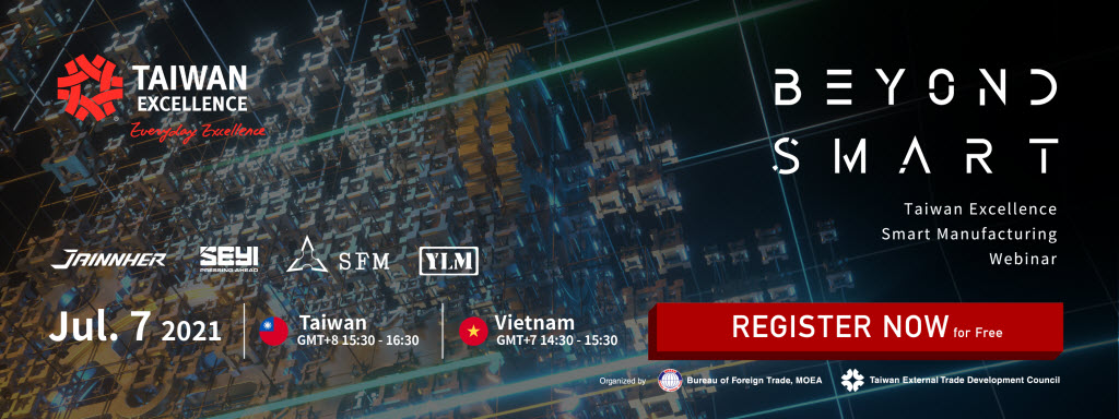 Vào ngày 7 tháng 7 vừa qua, Hội thảo về máy móc thông minh thuộc sự kiện MTA Việt Nam 2021 do Cục Thương mại quốc tế và Hội đồng Phát triển Ngoại thương Đài Loan (TAITRA) tổ chức đã mời 4 đại diện xuất sắc đại giải thưởng Taiwan Excellence là Jainnher Machine, Shieh Yih Machinery, Sun Firm Machinery, and Ying Han Technology đến để chia sẻ về các giải pháp sản xuất tân tiến của họ. Hội thảo “Beyond Smart – Taiwan Excellence Smart Manufacturing” đã thu hút 174 nhà mua hàng cùng 98 cơ quan truyền thông tham dự.