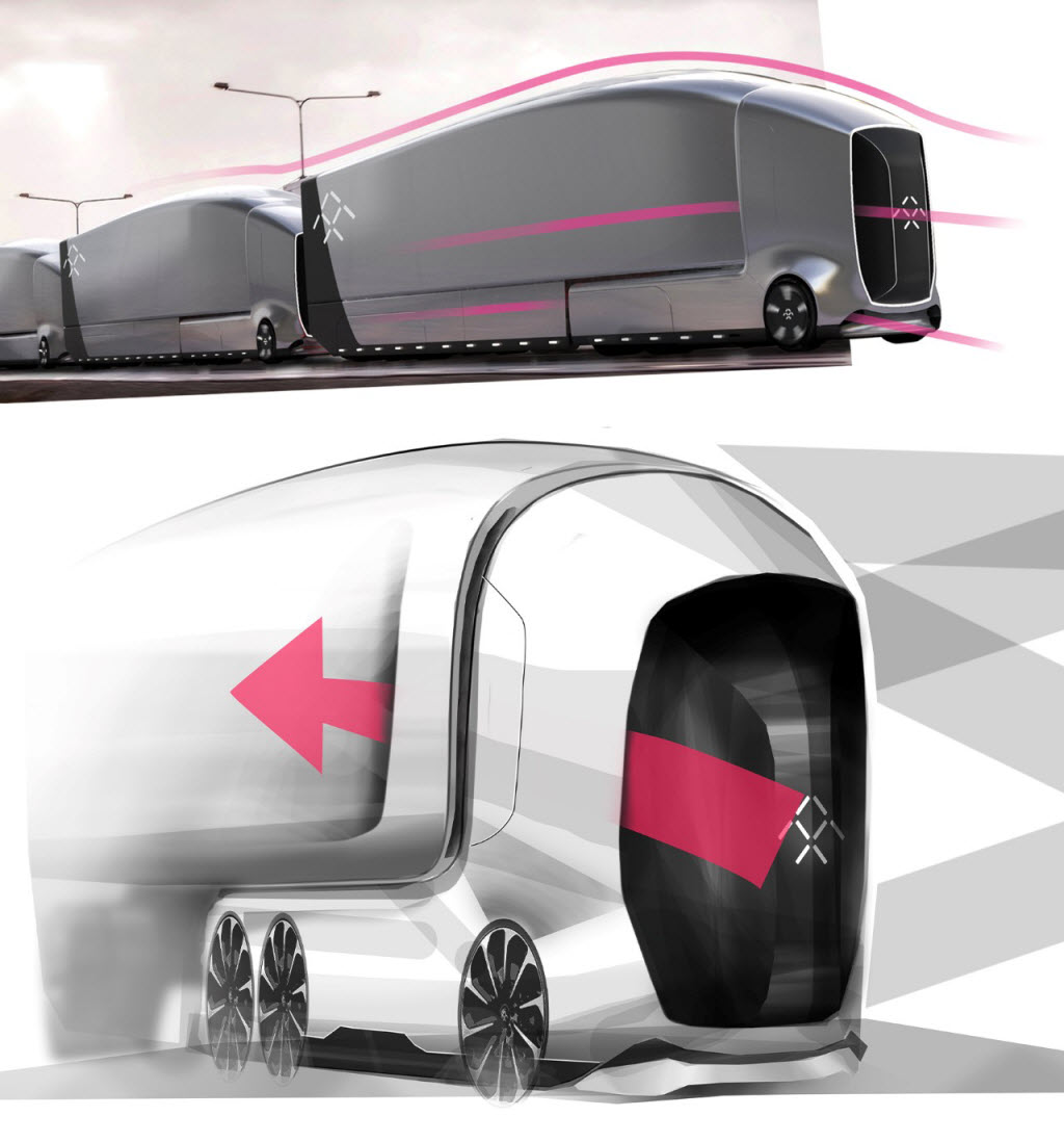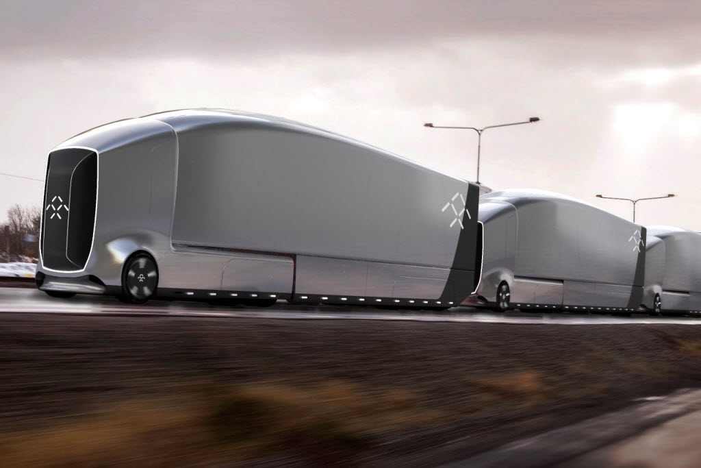 Trí tuệ nhân tạo thông minh của xe tải hoạt động như một bộ óc thực sự, có thể kết nối nhiều xe tải với nhau để đạt hiệu quả tốt hơn. Mặc dù khả năng này dễ dàng cho phép nhiều xe tải kết nối và làm việc song song với nhau trên bãi container hoặc bãi chứa hàng, nhưng nó cũng cho phép các xe tải kết hợp bằng cách tạo thành một liên kết chuỗi gồm nhiều xe tải, với một xe tải dẫn đầu và những xe tải khác phía sau nối theo sau như toa tàu. Một tính năng khá độc đáo dành cho xe tự động như thế này, nó cung cấp cho các phương tiện có tính thống nhất, cho phép chúng mở rộng kho chứa của mình một cách hiệu quả, chỉ bằng cách xếp thêm xe tải phía sau xe khác. Nó cũng giúp giảm đáng kể lực cản, cho phép các xe tải tiếp theo di chuyển với mức tiêu thụ năng lượng thấp hơn nhiều, giúp cho việc vận chuyển hàng hóa tiết kiệm nhiên liệu hơn rất nhiều.